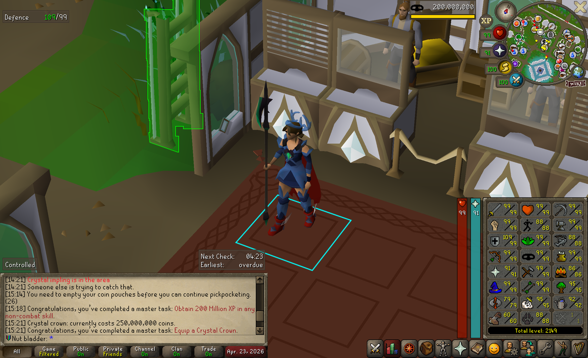 good morning still working on glogging easy clues and 99 thieving
