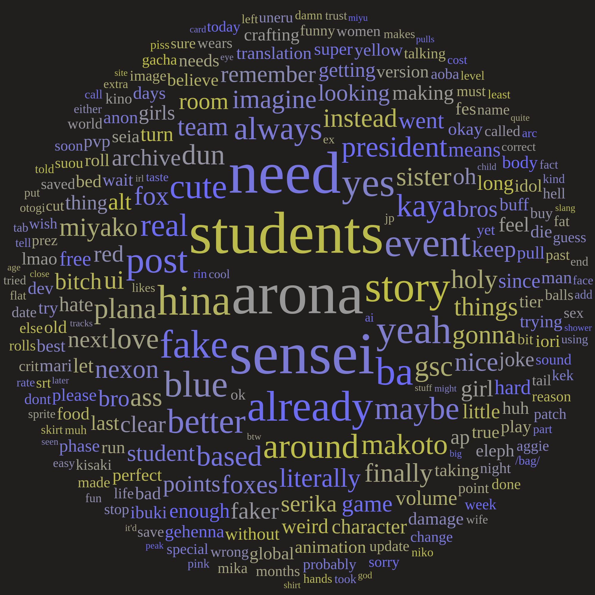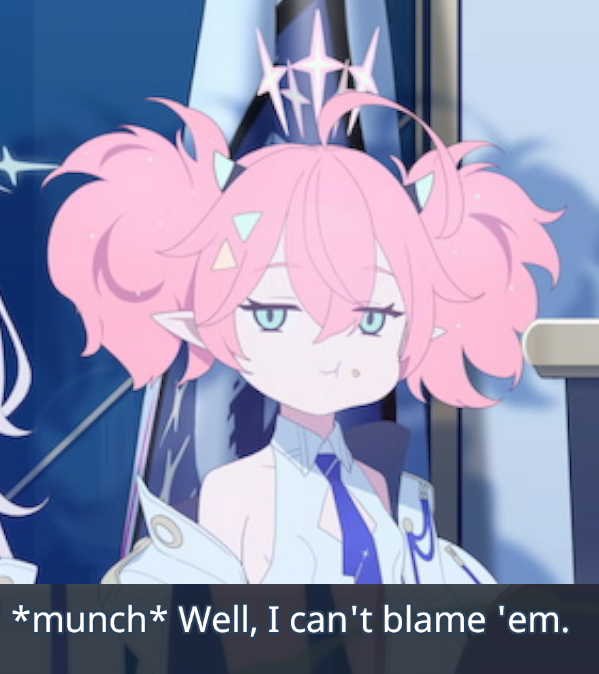 Blue Archive volume isn't a volume without a theme, anyone that knows the first four or five chapters properly understand each chapter has a central theme which you can view every character through the lens of. Like with volume 3 it was about trust, faith, all that jazz. Volume 5 had some themes about lies or masks or something, every character was faking something.Any idea what the new volume theme is, or has the writing changed? Like what's the central theme fucking up the characters, what are they all lacking, or what do they all seem to have in common. At the moment I don't see it. Arona is keeping secrets when she could fix this situation quickly, is it something about characters holding onto secrets? But that doesn't seem to be a consistent theme yet. I guess chapter 1 is still too early to tell.