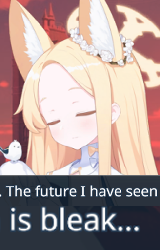 >>564322872I would love for the twist to be Kivotos itself is a false reality with this new thing just a fake on top of a fake. Just like how all these girls aren't really girls.