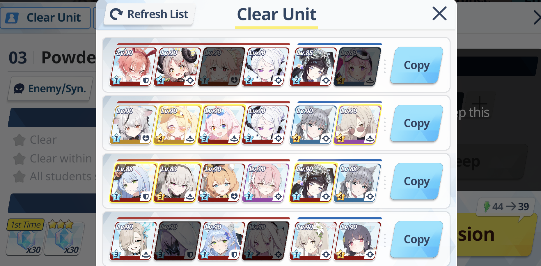 >>564326665What I usually do is look through the clear team section for teams that use students I already have, then try to figure out the strategy to beat the challenge.
