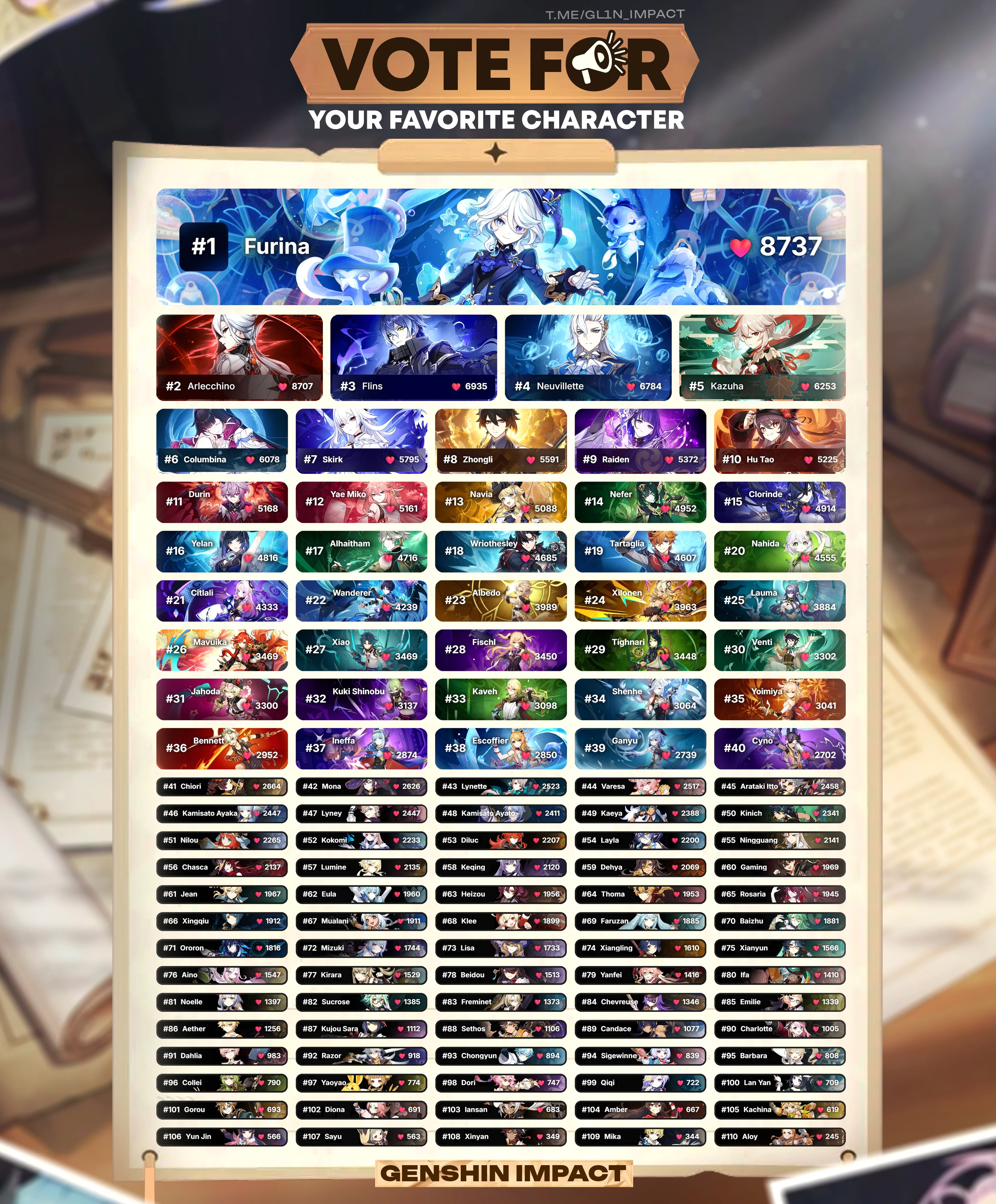 Furina: i floppedMavuika: I floppedColumbina: I flopped