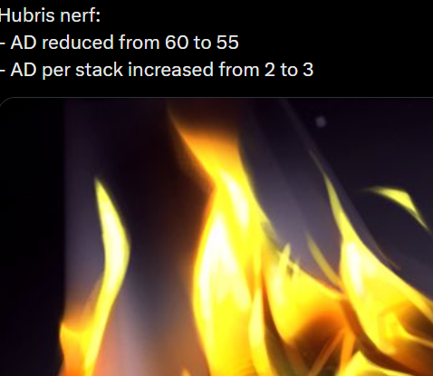 >>564326017>Truly a Riot-level 'nerf'.>>564326174IT'S THE SAME THING I THOUGHT! Why buff him when is already pretty strong with DnD? With the adjustments to the item he'll be even more.