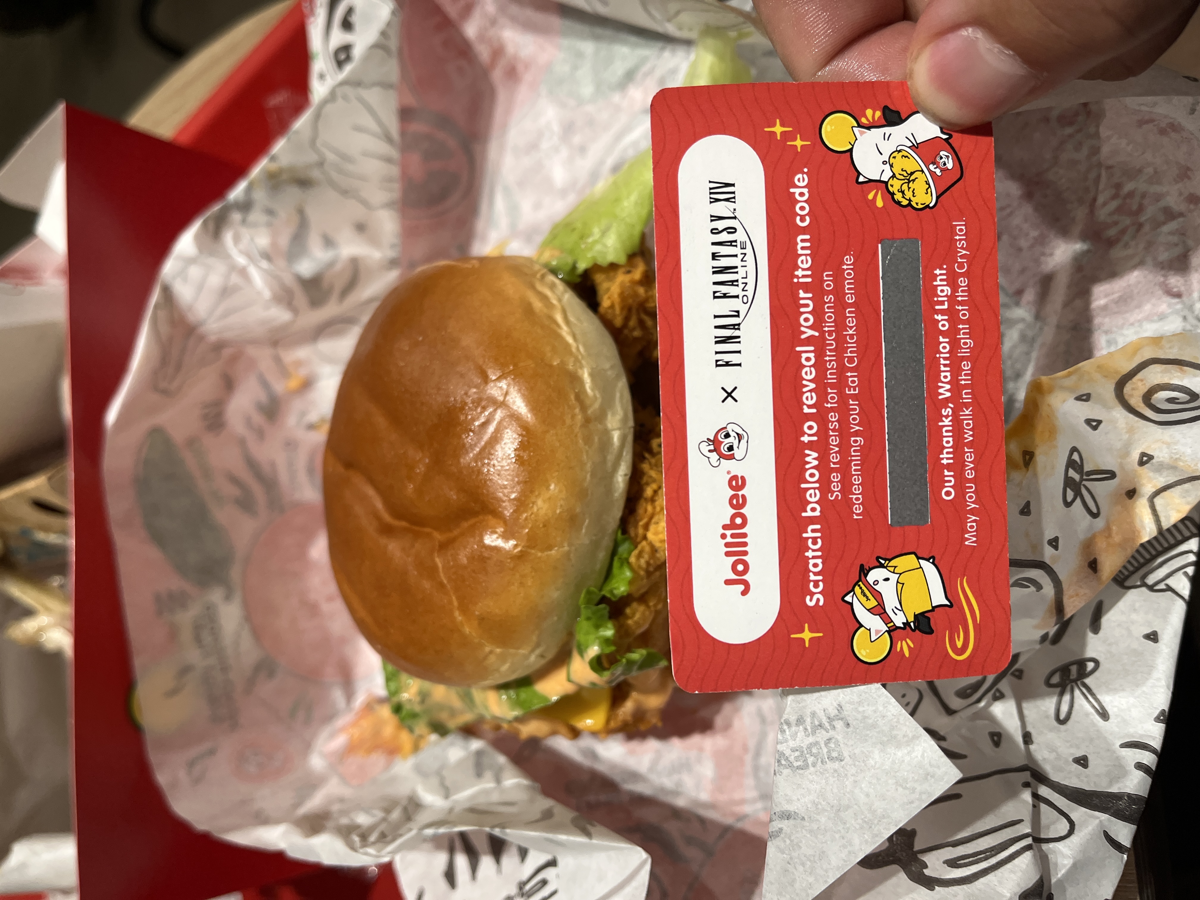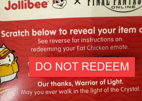>>564334109>Method 2Purchase Jollibee x FINAL FANTASY XIV collaboration merchandise from Complex during the campaign period! Spice up your IRL glams with these whimsical T-shirts and outerwear featuring moogles, chocobo, and Jollibee!https://na.finalfantasyxiv.com/lodestone/topics/detail/2ca9077926ee36f137c7969e60447b75dcaadf17