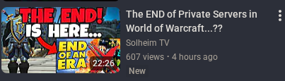 TWoW literally helped me not kill myself. I originally downloaded it thinking I will stop playing after a weekend but it turned into an on/off 2 year adventure that literally helped me through the darkest period of my life. My eyes are tearing while writing this listening the thoughts of people who made this world feel alive and meaningful for us. Thank you for all your work and effort folks, Twow has been the highlight of my WoW experience and nothing ever will come close to replicating it. Thanks to the devs and to the community, will miss you all greatelyBlindtongue