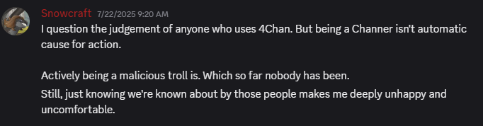 >>564348081Ngl reading the small crashout in his discord when they realized their server was added to the 4chan list if private servers was funny to read.>oh god oh god 4chan?!>plz no>lol that site still exists?>please I don't want the server to get DDOS'd