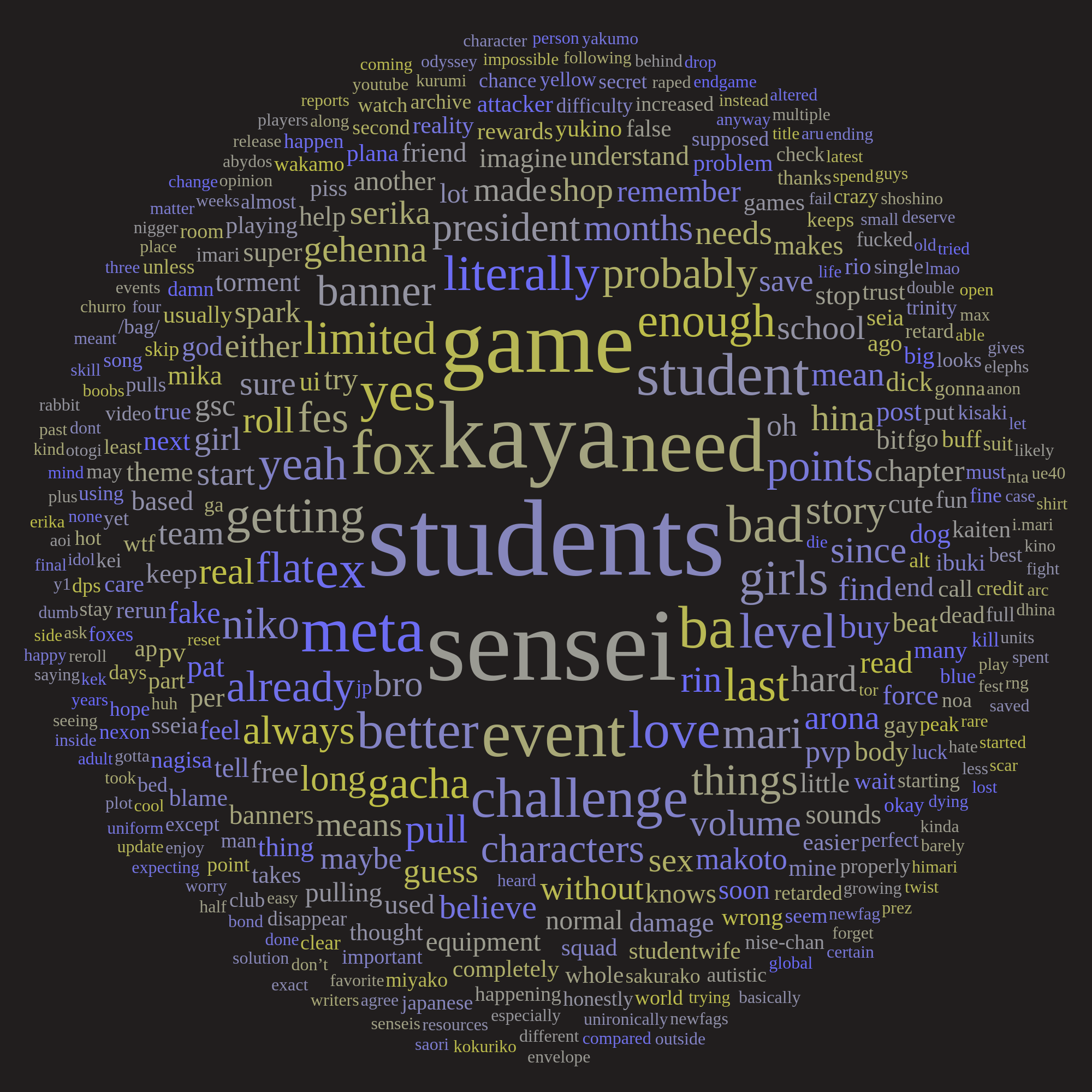 >>564345405>I skipped the storyyeah you're retardedWe don't welcome story skippers here, they're not real sensei's. Anyone that skips shit loses their sensei card. The story is the text, the story is not the cheap raids and "gameplay", if you hate the text then that is the game you hate. This is a visual novel.