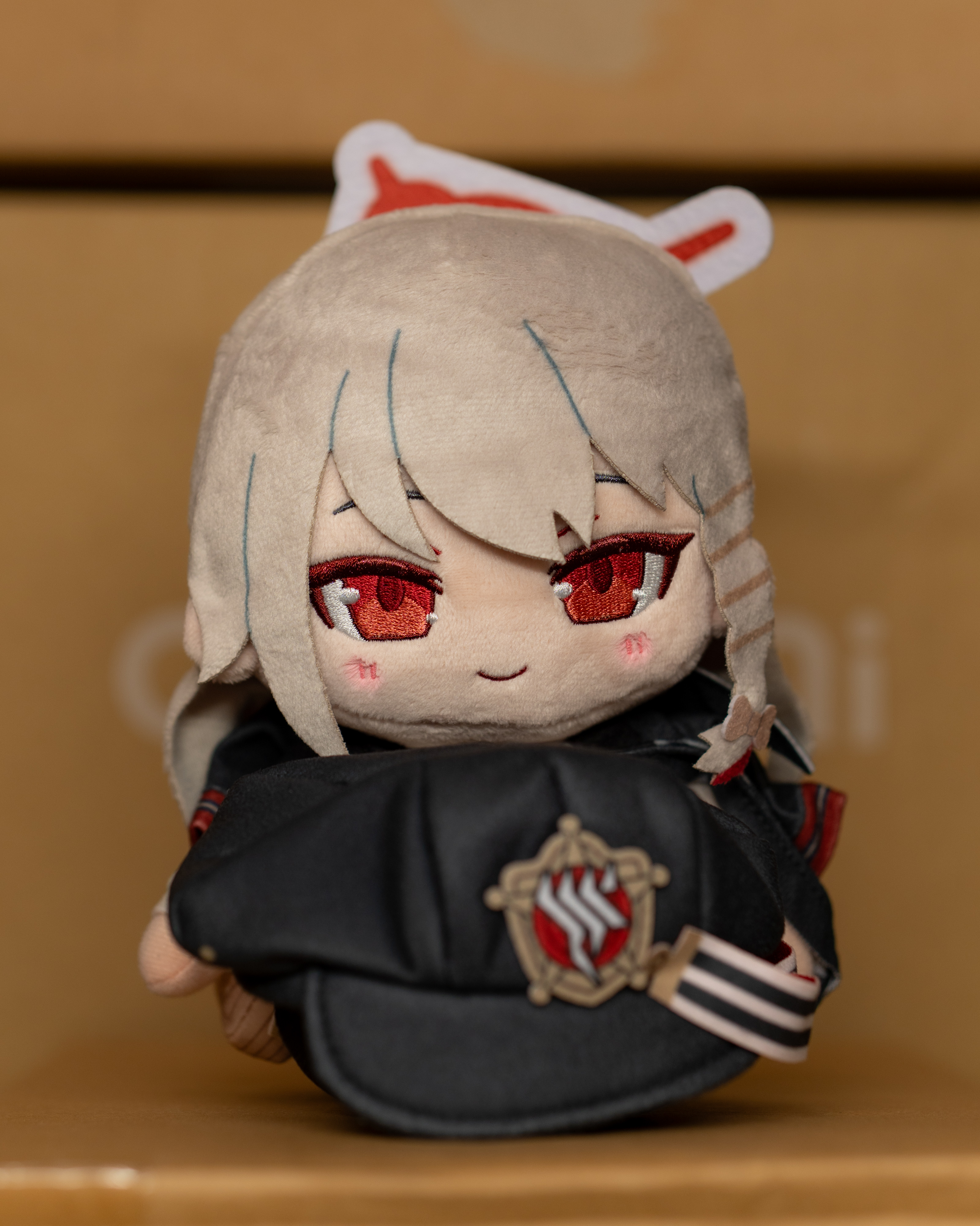 >>564333468Military morale patches for as many schools and clubs as I could get, a Schale Sensei ID Lanyard, figures for the main Abydos 5, and a Kazusa Nendoroid