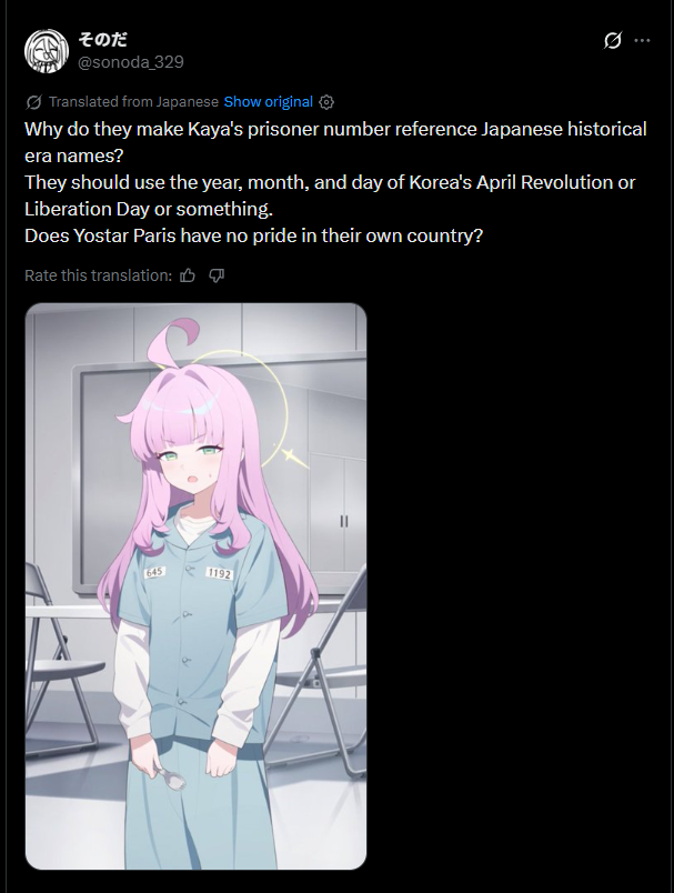 >>564345553>>564346026It's just plain stupid, too. The only themed schools are Hyakkiyako, Red Winter, and Shanhaijing. Trying to force other schools to follow a certain pattern just makes the whole thing really stupid.WildHunt is more British than Trinity. Valkyrie is the school that most resembles the U.S., but since it’s a joke of a school, Americans don’t like to admit it. Arius has a distinctly gothic style, and one could say it resembles France, but it doesn’t make sense for a school to have ties to anything that Trinity was supposed to be.Abydos is themed around a civilization that no longer exists.