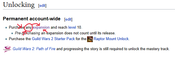 >>564401058This is wrong.>>564399734Yeah, I came back after 10 years off, with just the base game and Heart of Thorns on my account, and the game gave me a free raptor at level 10 that never went away.I couldn't customize it, dye it, invest in masteries for it, etc, until I bought Path of Fire, though.I was very confused by all of the commanders telling us to use raptors to "suck in" enemies because I had no idea that you unlock a mastery that turns the raptor's attack into a vacuum. I just thought I had overlooked that functionality.