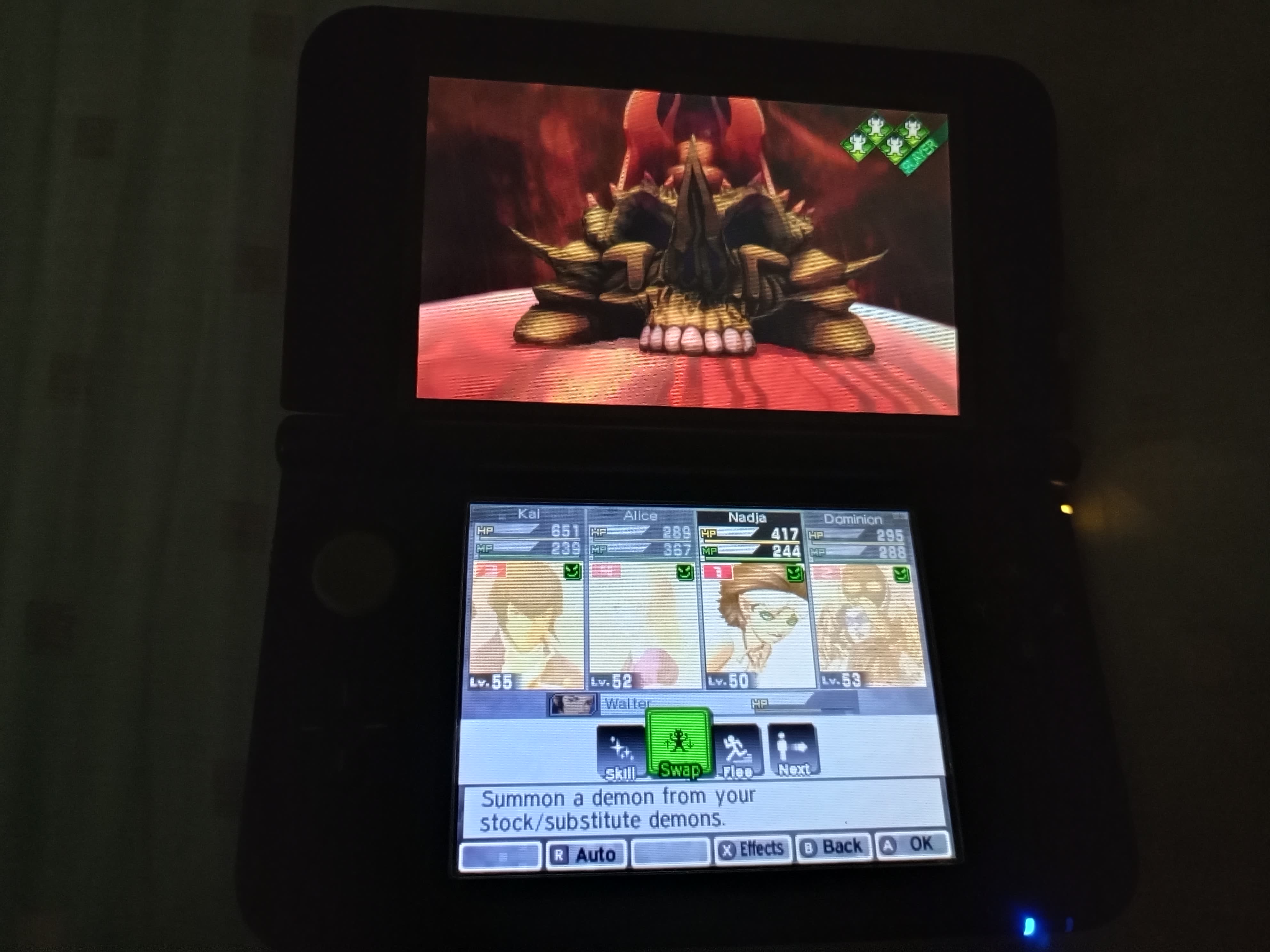Finally got a party wide smirk in this game. Makarakarn and Tetrakarn make this game even more of a joke than what it already is, but it's funny seeing the boss kill itself.