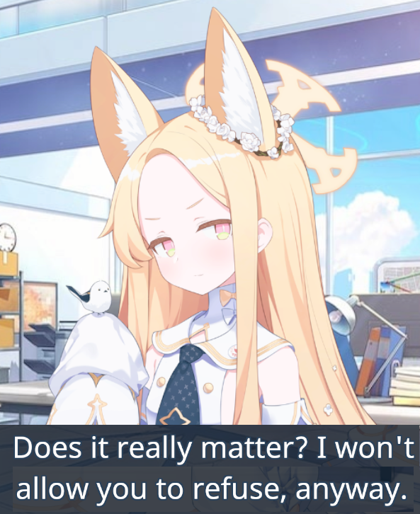 I got jumpscared by the yellow dot on my daughter's icon in the student list, I had no idea they added a new momotalk. I love her so much...