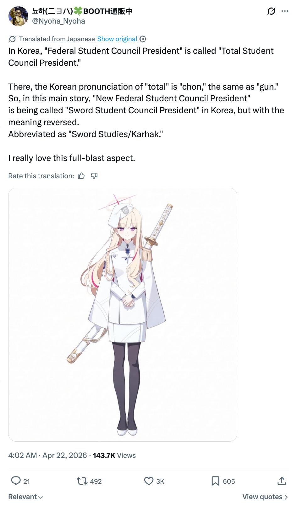 https://x.com/i/status/2046494109117055261Why is this nigga trying to lecture Blue Archive fans when he doesn't play the game in the first place?Is getting insulted by both sides some fetish or something? Because you're still a pedophile for the people you're defending just for liking anime women, retard.