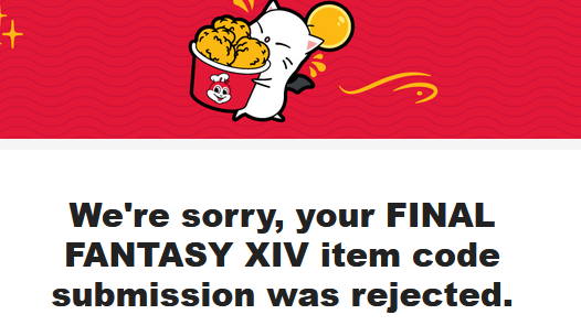 >wait all day for my chicken code>doesn't come>try resubmitting the receipt number under a different (incorrect) category and a different email>it worksokay.
