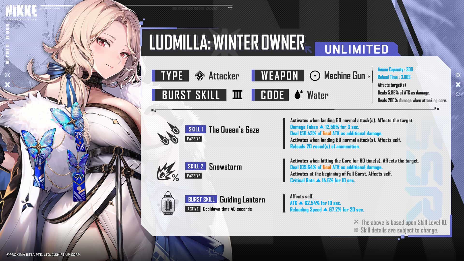 With the 0.7 fixed charge speed during her Burst, she heals everyone for base 20% of their max HP during her Burst which will ALWAYS activate since she's re-Enter and that's on top of any other Bursts.The question is if those are base values and if they will increase with skill level.