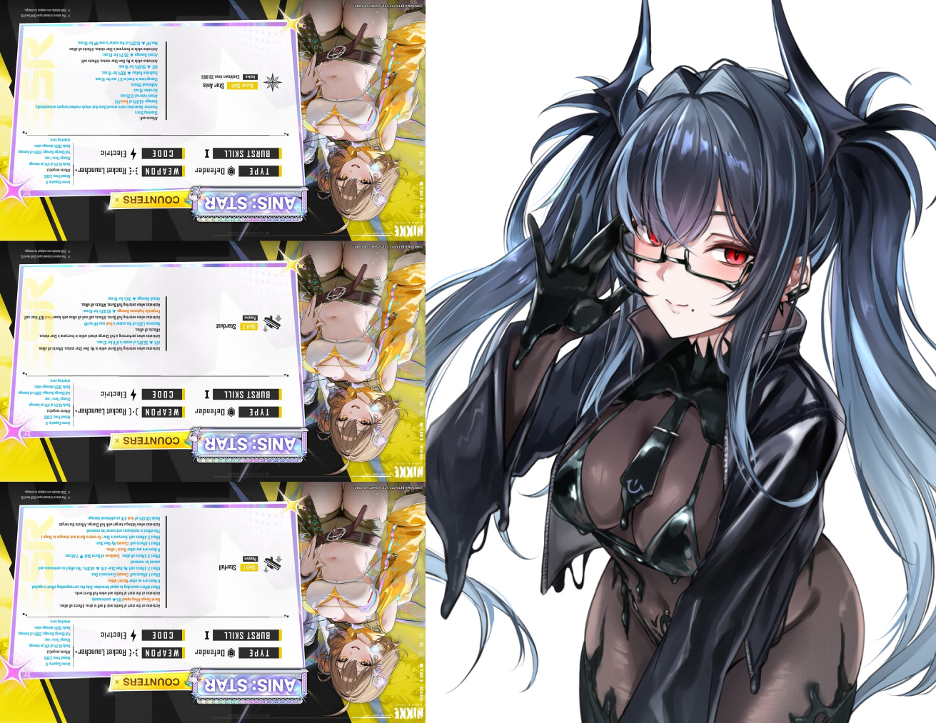>Download - Android/iOS/PChttps://nikke-en.com/index.html>General Info/FAQ for New Playershttps://rentry.org/NikkeInfo>Additional Linkshttps://rentry.org/nikghomeALL DATES/TIMES LISTED BELOW ARE UTC+9 (KOREA TIME)>Update on April 23https://nikke-en.com/newsdetail.html?content_id=d723f151a8486a4aa8ab97da64704c1d8081>Current EventsGOOD WORLD - April 9 ~ April 22>Cheer for Anis!https://nikke-en.com/events/GuardNIKKEStars/>Upcoming EventsSTAR ANIS - April 23 ~ May 14Co-Op: Black Smith - April 24 ~ April 26Solo Raid - April 30 ~ May 7Co-Op: Alteisen - May 8 ~ May 10>Current Special RecruitsSnow Crane - April 9 ~ April 22>Upcoming Special RecruitsAnis: Star - April 23 ~ May 14Neon: Vision Eye - April 30 ~ May 21Avistar [Free SSR] - April 23 ~ May 14>Current Costume PassesDrake: Villain Racer [Costume Gacha] ~ April 22Liter: Cute Sunflower ~ April 22Exia: Gamer ~ April 22Biscuit: Spring Puppy ~ April 22Sora: Spring Flight [Mission Pass] ~ April 30Clay: Cheer Up Training [Login Event] ~ April 30>Upcoming Costume PassesLiberalio: Dreaming Lake [Costume Gacha] - April 23 ~ May 14Anis Star: Starlight [Costume Gacha] - April 30 ~ May 21Anis Star: T.T. STAR [Costume Gacha] - April 30 ~ May 21Dorothy: Luna Light [Event Pass] - April 23 ~ May 14Rapi Red Hood: Shining Light [Mission Pass] - May 1 ~ May 31(Rerun) Grave: Beautiful You [Cash Shop] - April 23 ~ May 14(Rerun) Snow White: White Knight [Cash Shop] - April 23 ~ May 14(Rerun) Diesel: Midnight Strawberry [Cash Shop] - April 23 ~ May 14(Rerun) Emma: Office Therapy [Cash Shop] - April 23 ~ May 14(Rerun) Brid: Black Moon [Cash Shop] - April 23 ~ May 14(Rerun) Rosanna: Ms. Dangerous [Cash Shop] - April 23 ~ May 14>CodesMILLIONCOMMANDERS (04/30/2026)COMMANDERLOVETRIAL (05/13/2026)PROTECTARKSTAR (05/13/2026)CHEERFORANIS (05/13/2026)3ANDHALFWITHCOMMANDER (05/13/2026)ENCOUNTERONCEMORE (05/13/2026)Previous: >>564325163