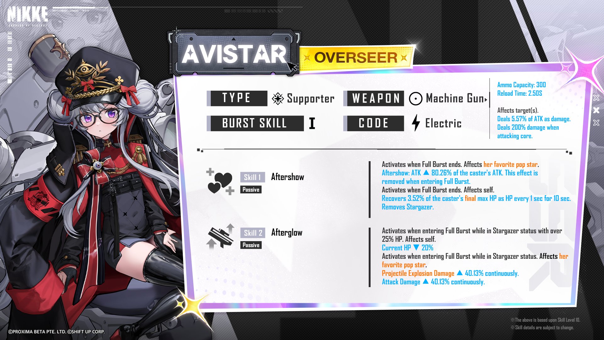AVISTAR GIVES ANUS 40% ATTACK DAMAGE UP AND 40% EXPLOSION DAMAGE DURING FULL BURST AND 80% ATK UP OFF BURST BRAVE NEW META