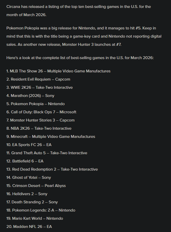 >>564390180is it so hard to believe marathon is popular in north america and not popular in japan so a north america only sales comparison will be more favorable to it than a japanese game? to say nothing of china.