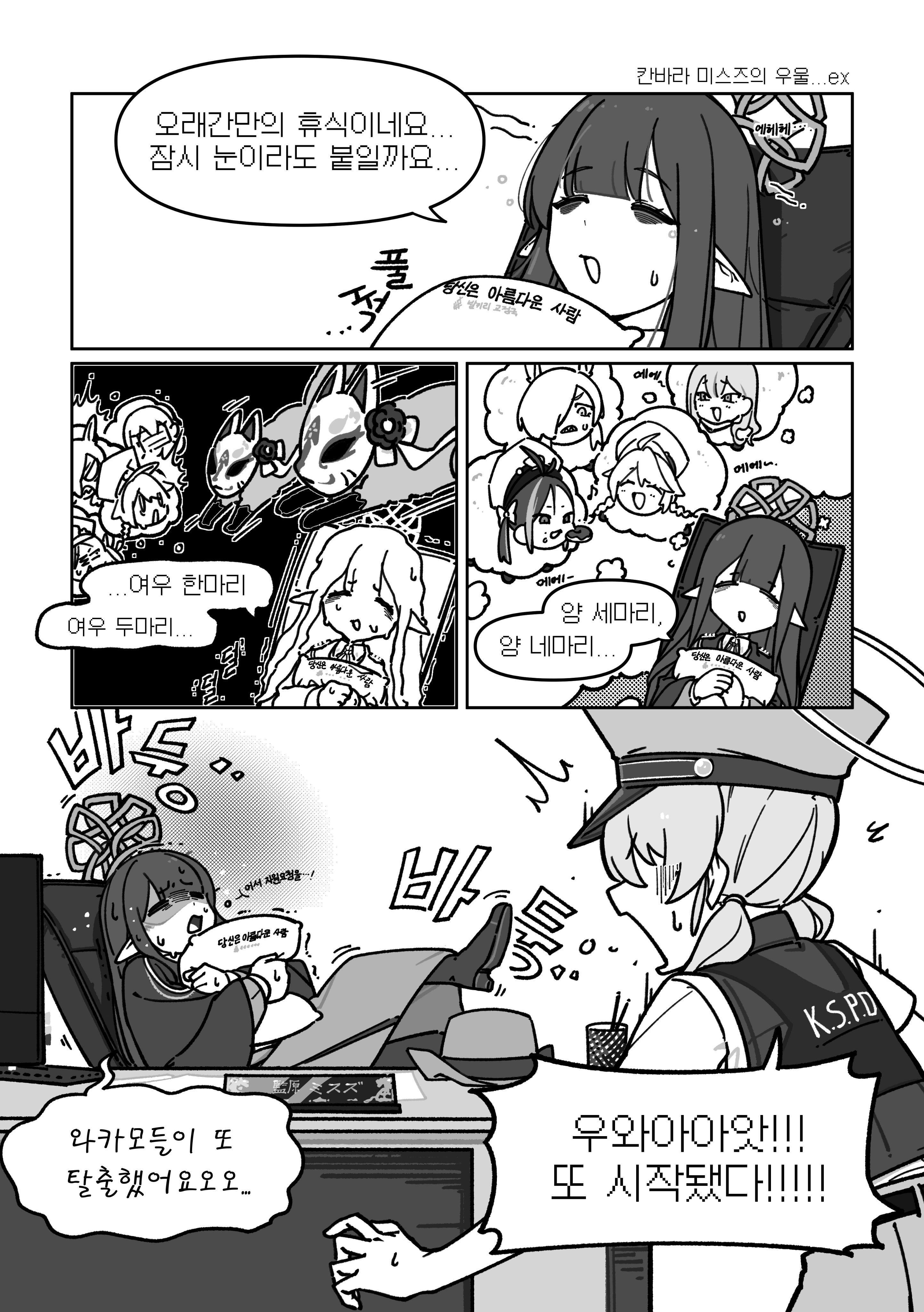 Keeping Arona and Plana on edge by playing Russian roulette every morning before work