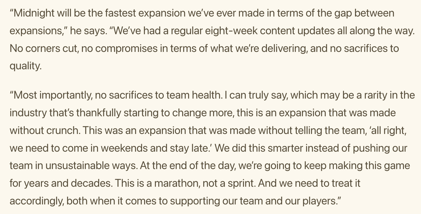 >>564405014>We did this smarter instead of pushing our team in unsustainable ways. At the end of the day, we're going to keep making this game for years and decades.>story is speedrunning concluding all plots as fast as possible with no new open threads or points of interest, everything is just being hastily wrapped up like they didn't get renewed for another season and have to half-ass a series finale>game is becoming so buggy and broken anymore that you might just log in one day, see your character is gone and a broken ChatGPT support bot tells you to try doing circles around Area 52 on another character to fix it