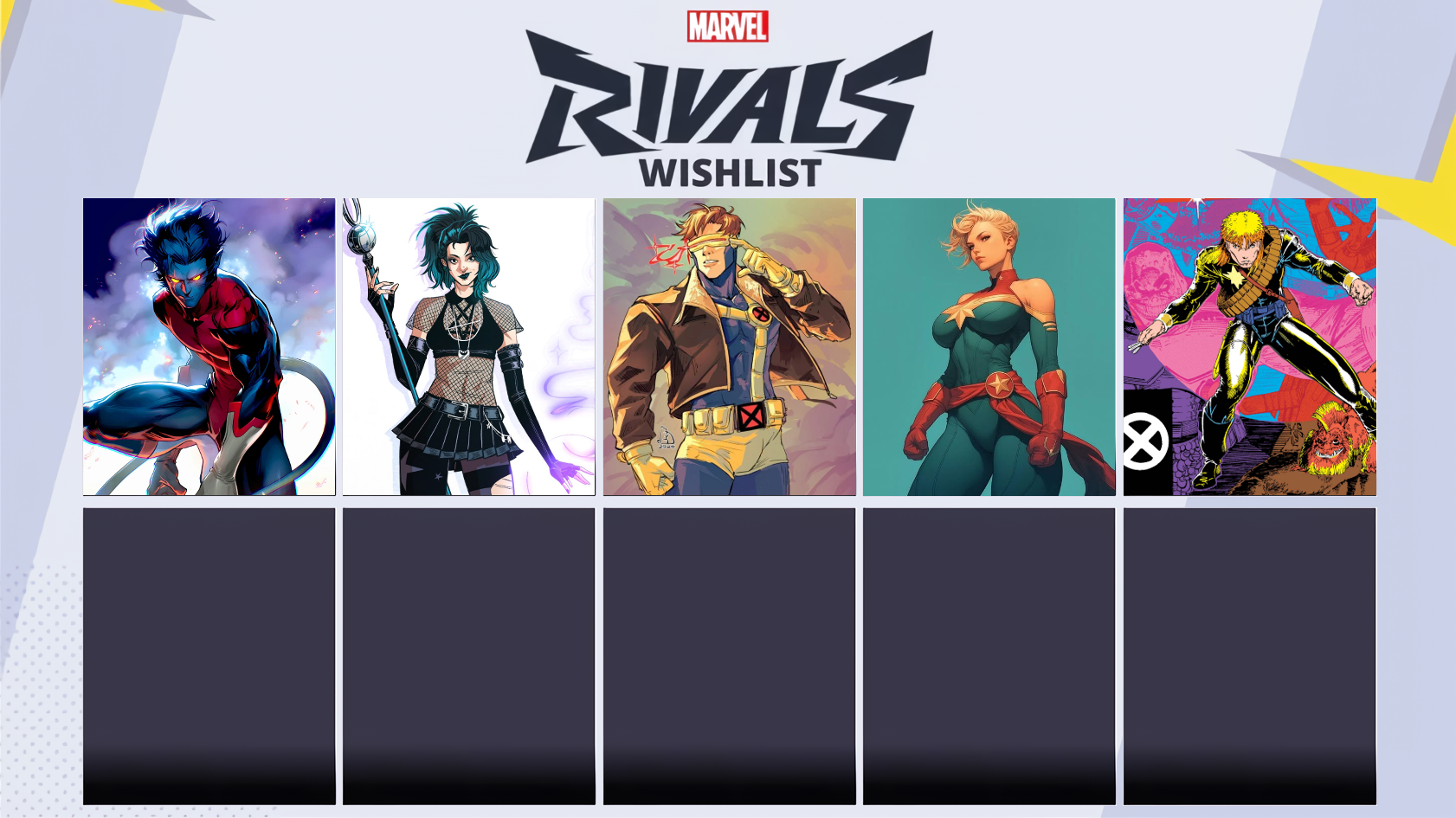>>564392974>Rogue>Psylocke>Storm>Namor>Magnetocongrats to psylocke and her free skin next year