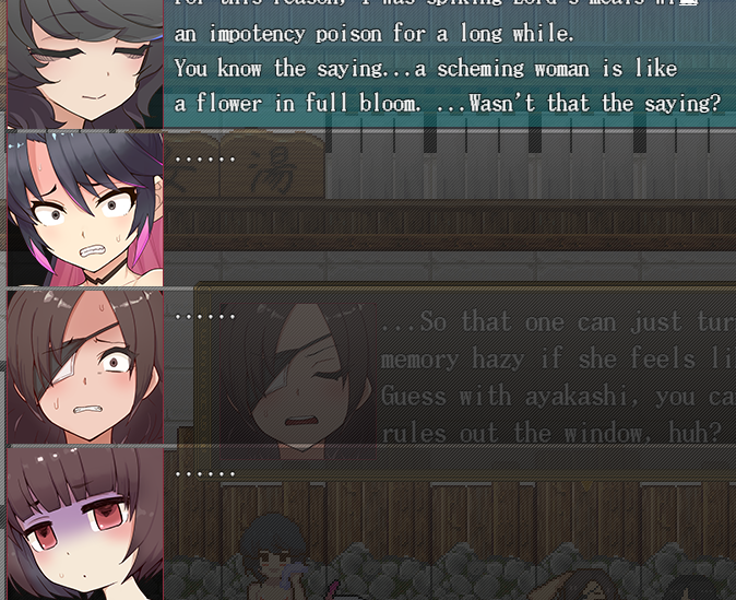 What're some examples of great attention-to-detail you guys have seen in hgames?I love it when there are working reflections in mirrors/water.And when the standing CGs and scene CGs change to show what equipment you have on at the moment.Even better when entirely cosmetic clothes and accessories are a part of the equipment menu and have an effect on how other NPCs react to you.Would love to see a game that has dynamic tan-line generation based on the clothes worn and spending time outdoors, but I haven't seen one with that yet.