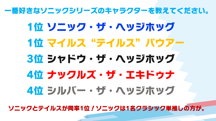 >>564388785>Actually Tails is the most popular character within Sonic Team next to SonicThey can say whatever they want in a bullshit poll, but their actions say otherwise. SoJ doesn’t respect anyone but Sonic and Shadow these days. Silver gets crumbs from that because he’s also a male hedgehog privilege. Everyone else gets shafted unfairly because of their racism