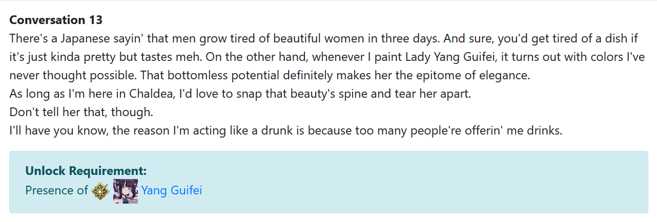 >>564422914They do appear sane. Until the do something like choose to go and paint in the void sea instead of saving humanity. And they're always at risk of going completely off the deep end:>Now, the Servant known as Katsushika Hokusai is at constant risk of falling into madness thanks to possessing two personalities: Katsushika Oui, who still retains her human sensibilities, and Hokusai, a Foreigner who reached the domain of the divine by letting an evil god into his body.
