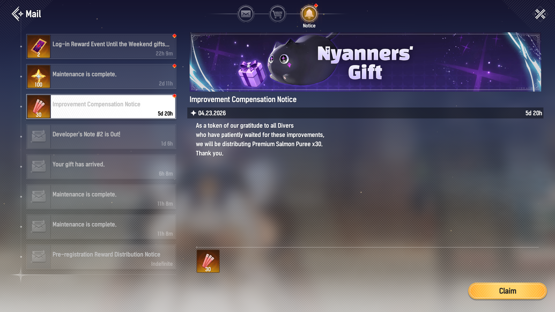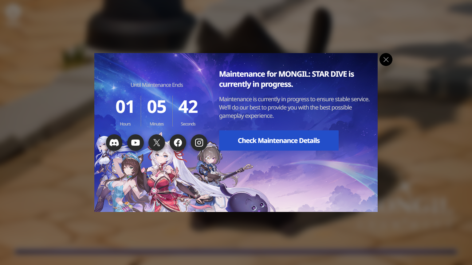 90 minutes until maintenance180 minutes until maintenance concludeshttps://forum.netmarble.com/stardive_gl/view/2/209