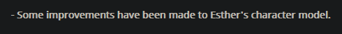 What improvements do you want from Esther's model after maint