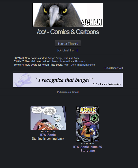>>564437521Storytimes are one thing but I remember couple of years back a mod (allegedly) banning people for posting archie Sonic threads and told them to take it to /v/ and /VG/.