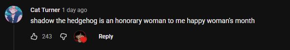 >>564443016Brother these comments are depressing. One saying Shadow represents toxic masculinity (someone notify the Twitter poster) and one saying he's probably transfem. I fucking hate it here.