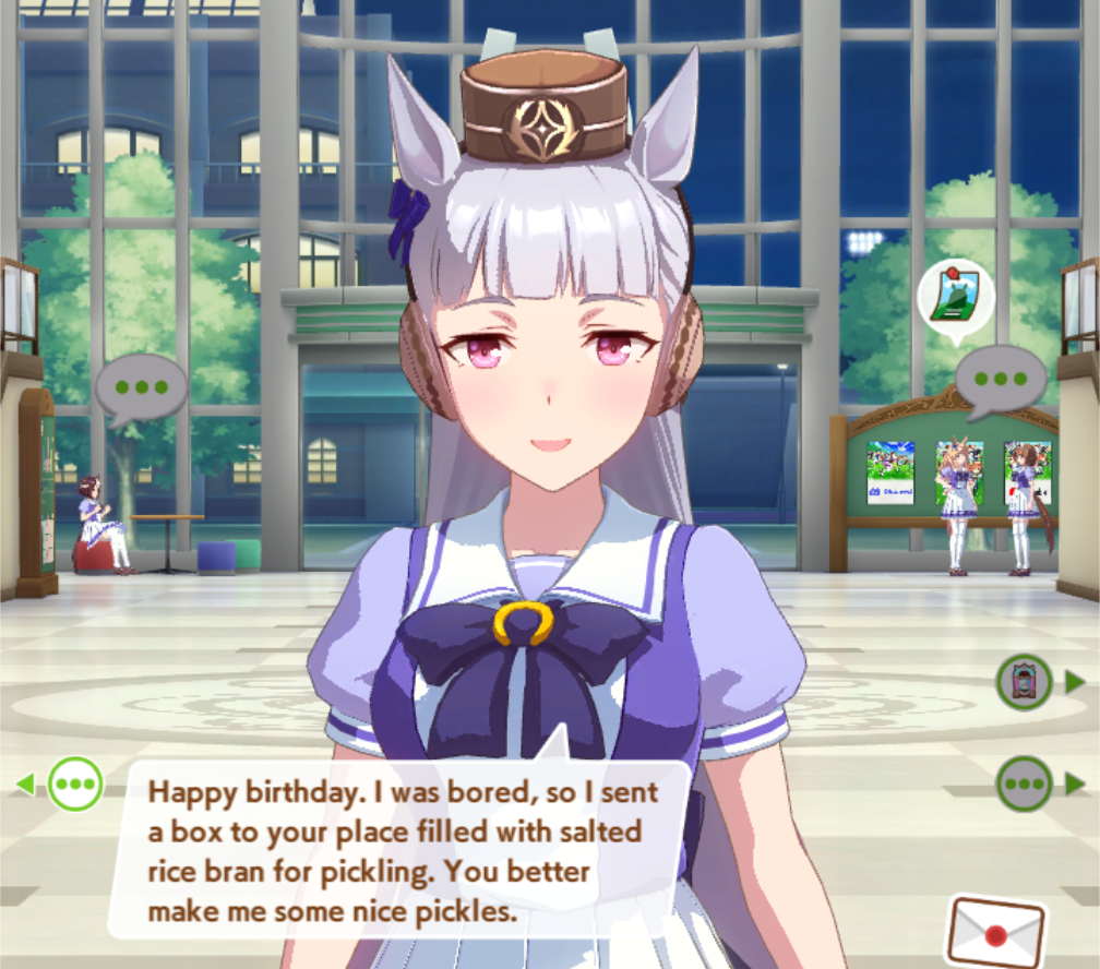 >Bouqeut's birthday today>Ai apparently gifted her an actual Boquet>Bouquet thanks her then goes on and on about the flower color choices and how they seem to match Ai herself>Almond Eye stops her from what seems to be embarrassment then wishes her Happy BirthdayCute.