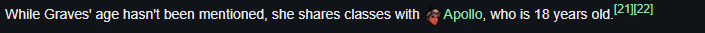 >>564432448Celeste calls Apollo an 18 year old. Graves shares a class with Apollo. Valve hasn't made an official statement about her age but if 1+1 = 2 then she is most likely 18 as well. But because she is in highschool all the online activists larp as 2000 christian puritans. Honestly, their media literacy needs work.