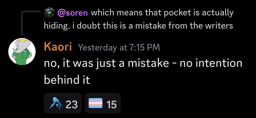 >>564466379people complain about whatever character last raped them in MM
