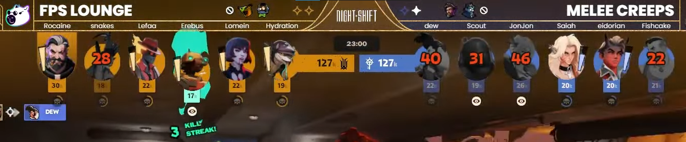 >Kelvin plays outside of base solo multiple times and gets Bebop hook even after multiple warnings from team>Keeps doing it while we are at base and enemy has 3 rejuvs pushing>McGinnis mindlessly feedsI knew I had it too good when I won 3 in a row, now it's time for my mandated 3 losses in a row