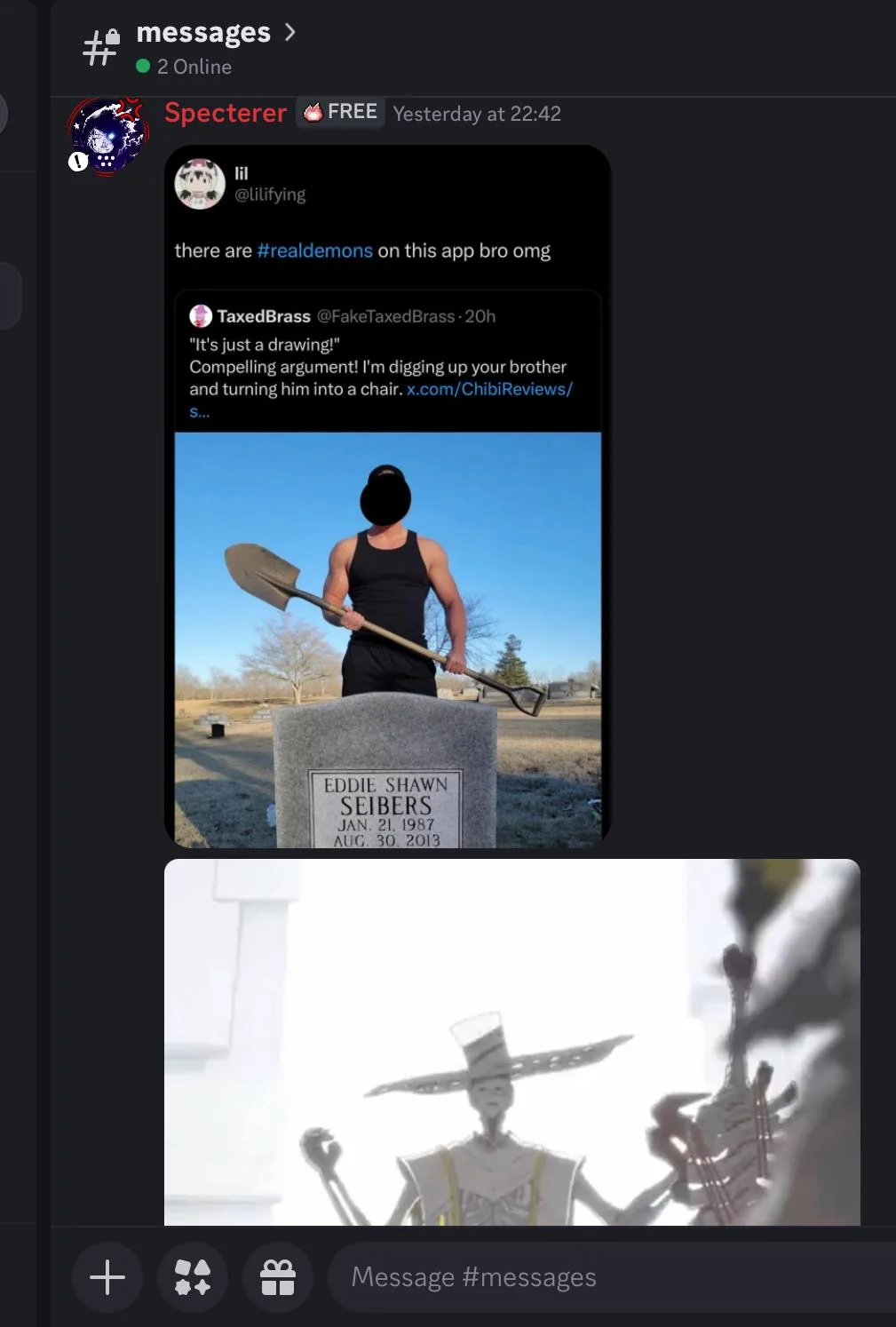 >>564459179Sadly it was not in fact real. It was a dude using AI to make it look like he was going to dig up a pedo's brother's grave and it fucked the lolicons on twitter up because their argument has always been "It's just a drawing" meanwhile chibi (the pedophile) wasted police resources on investigating AI slop.