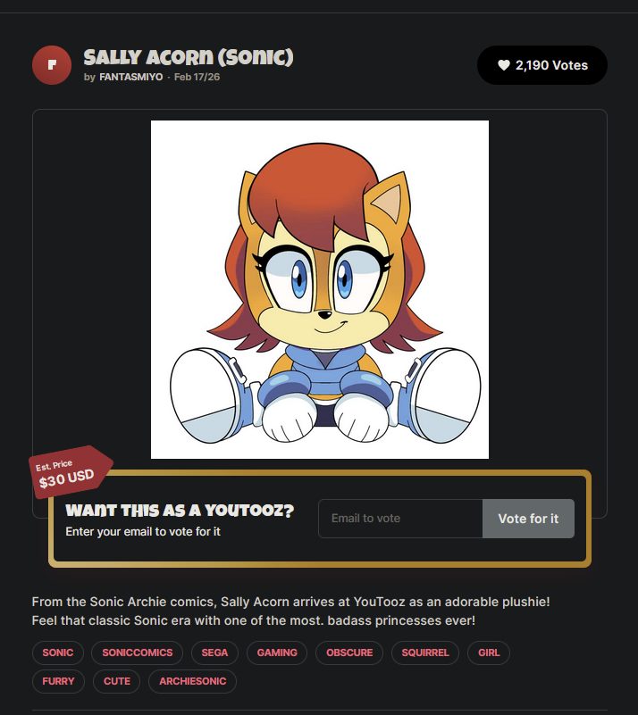 >>564447571The point is that SEGA making Sonic and Amy officially a pairing would dampen the money maker.The will they will they not bullshit is the hook that always delivers