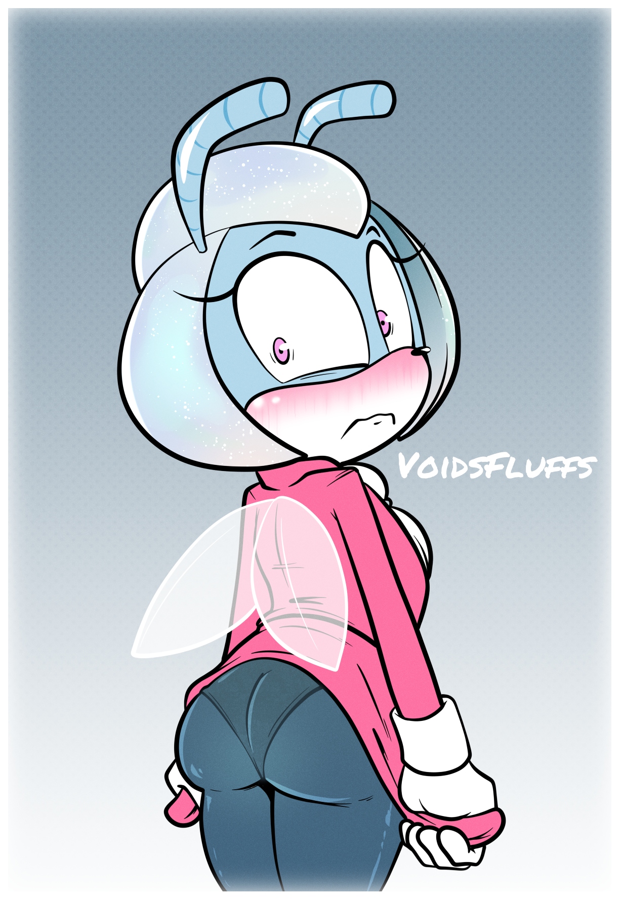 I'd love to see some wholesome lewd of this cute buggo. Like, imagine (You) and her sneaking off into the filing room and you just start making out, getting so heated that you barely have enough restraint to simply pull her pantyhose down instead of ripping them.You pull them down, pull her panties aside, and fuck her against one of the filing cabinets. The sensation is so intense and overwhelming that you only last a few minutes before you bury yourself balls deep in her pussy and unleash a month's worth of cum inside her.It takes all the willpower in her body for her not to scream, but she releases her breath into your mouth in a dirty, yet loving kiss.Nine months later, you're a father of two.