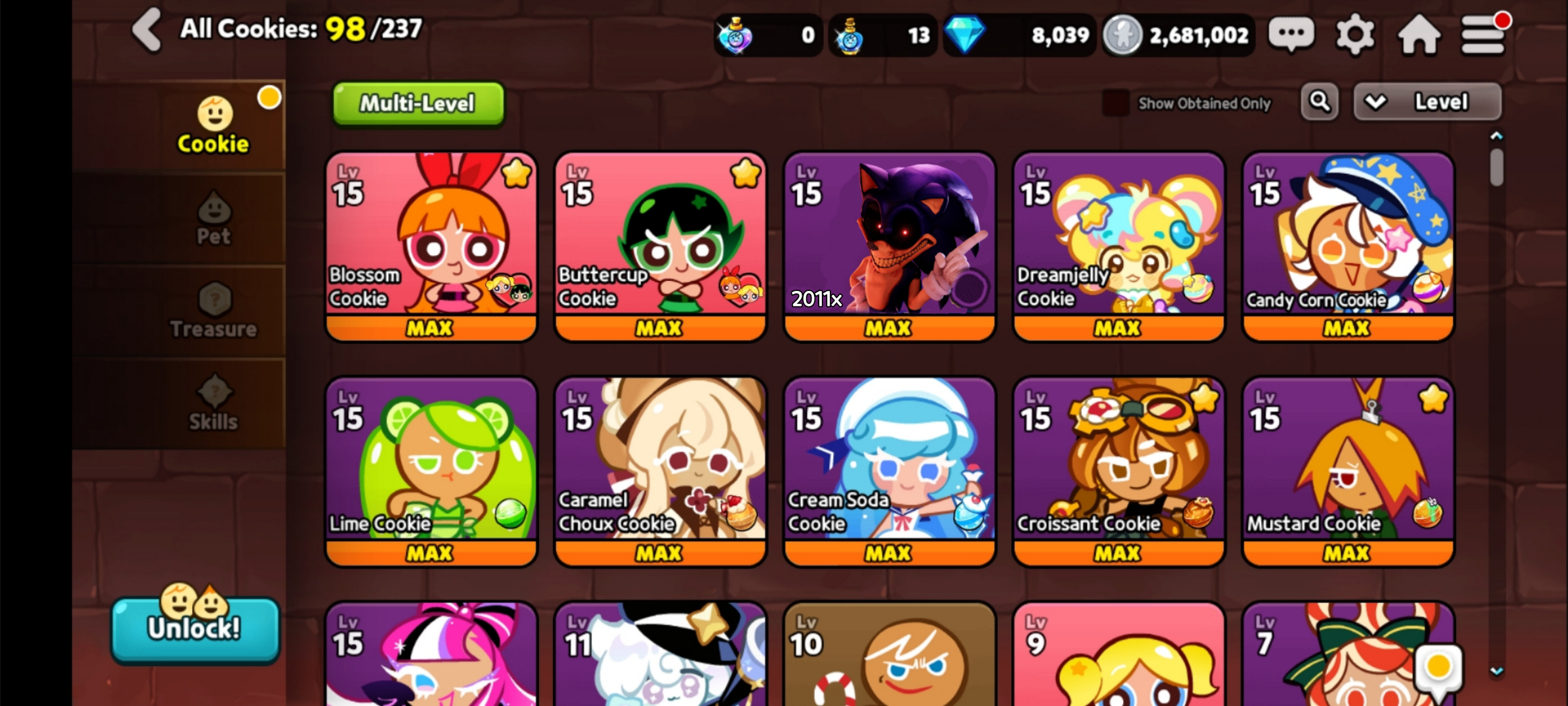 >>564464467oh, sure! I couldn't manage enough event currency to max out Bubbles, that's why she's level 9 and not max level like the other two Powerpuffs
