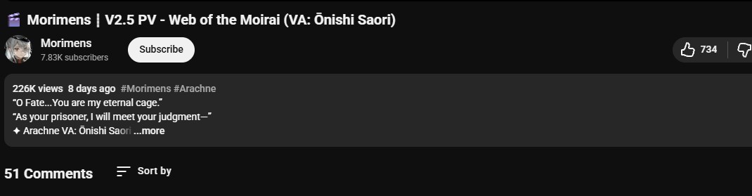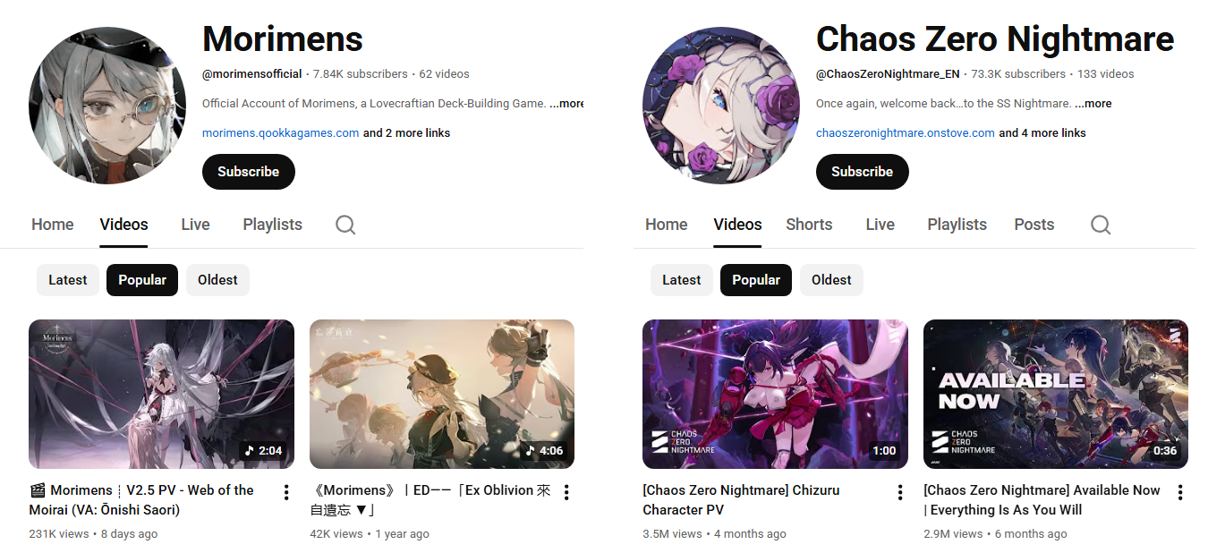The Morimens 2.5 one is clearly being set as an advertisement on Youtube so the views are getting boosted. Unless you want to say Morimens players are way more quiet and interact way less.