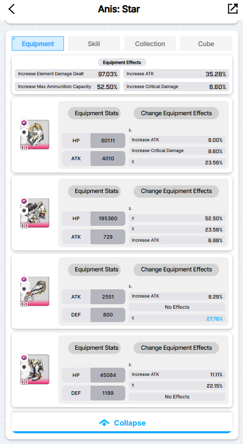 if you have crown dupes and plan to use anis with her, consider 1 line of defense and 1 line of crit dmg/rate