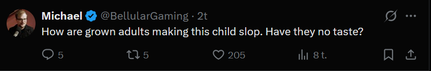 >>564488849>Bellularomfg i hate this guy...He just does retarded ragebait content."OH THE GAME IS BAD AND DEAD""OH THE GAME IS SO GOOD AFTER THIS"I just fucking hate him