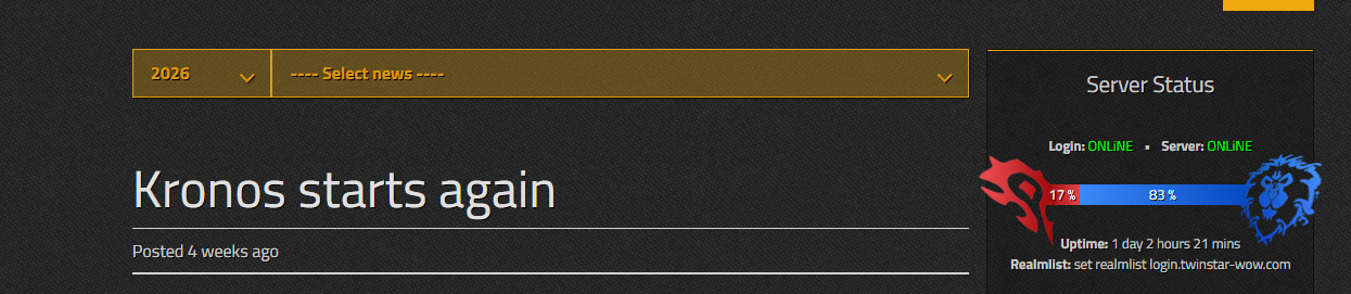 Lost Media Edition>Recent NewsTurtle Wow and Stormforge are both shutting down on May 14th.Most Turtle refugees have moved to Epoch for now.>Released ServersAscension/Epoch - https://ascension.gg/en (Vanilla+, Classless, Custom Classes/CoA, Epoch)Warmane - https://www.warmane.com/ (WOTLK)Tauri - https://tauriwow.com (WoD on Legion client, Legion content coming soon)Chromiecraft - https://www.chromiecraft.com/en/ (PVE, progressive)Athena - https://twinstar-wow.com (Cata)Valanior - https://valanior.com/ (Vanilla+)Proudmoore - https://proudmoore.gg/ (Cata)Whitemane - https://whitemane.org/ (Cata, MoP, TBC)WoW Hardcore - https://wow-hc.com/ (Vanilla, HC only)Azerotica - https://azerotica.net/ (WOTLK, PVE-ERP)VanillaPlus - https://vanillaplus.org/ (Vanilla+)Ashen-WoW - https://ashen-wow.space/ (Vanilla)Crusader-Storm - https://crusader-storm.com/ (TBC)>Upcoming ServersKronos5 - https://www.kronos-wow.com/ (1x Vanilla)Wallcraft - https://www.wallcraft.org/ (Vanilla+)>Active GuildsType /who g-"Guild Name" to see who's online, then whisper anyone for an invite, or ask in thread.<Thousand Tusks> - Epoch, Kezan realm (PvE), Crossfaction<DESU> - Epoch, Gurubashi realm (PvP), Alliance<gulag> - Tauri, Evermoon realm, Alliance>Mods, Tutorials and /wpsg/ Creationshttps://pastebin.com/9C4nXnUC>WoW with playerbots:https://solocraft.org/https://microbot-wow.net/https://github.com/celguar/spp-classics-cmangos/releaseshttps://www.azerothcore.org/wiki/core-installationhttps://github.com/mod-playerbots/mod-playerbots>WoW Wuxia Cultivation Simulatorhttps://synastria.org/>Addonshttps://warperia.com/>How to play Epoch without downloading Ascension's client> `C:\users\YourUserNameHere\AppData\Local\ProjectAscension\Config`>AscensionLauncherSettings.json"selectedProductId": "9182cd78-4258-4ace-8f3f-cfea56932b14","selectedProductSlug": "epoch-live">Previous thread>>564436440