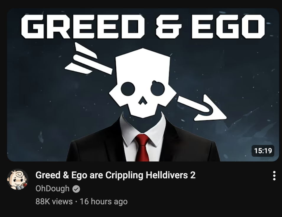 Locking all new weapons, grenades and armor sets behind a paywall is fineTaking the third armor set, associated cosmetics and the final gun/throwable from the warbond and selling them in the cash shop is fineLocking the vast majority of new stratagems behind a paywall is fineLocking new vehicles behind a paywall is fine>YOU ARE HERELocking advanced weapon customization behind a paywall is fineLocking new shipmodules behind a paywall is fineLocking vehicle customization behind a paywall is fineLocking new biomes and enemies behind timed paid tickets is fineLocking bugfixes behind a paywall is fineCharging 15 bucks a month as a subscription for being allowed to play the game is fine