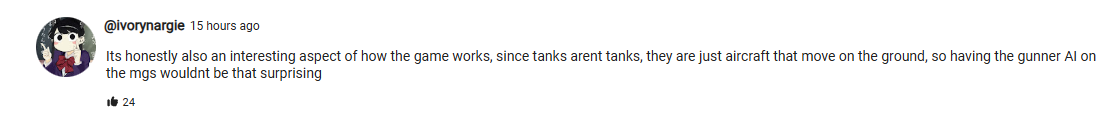 >>564552158Yeah, and it's not manned ingame because gaijin literally cant into external crew mounting pintle weapons or else USA would receive a nerf to their entire ground tree.