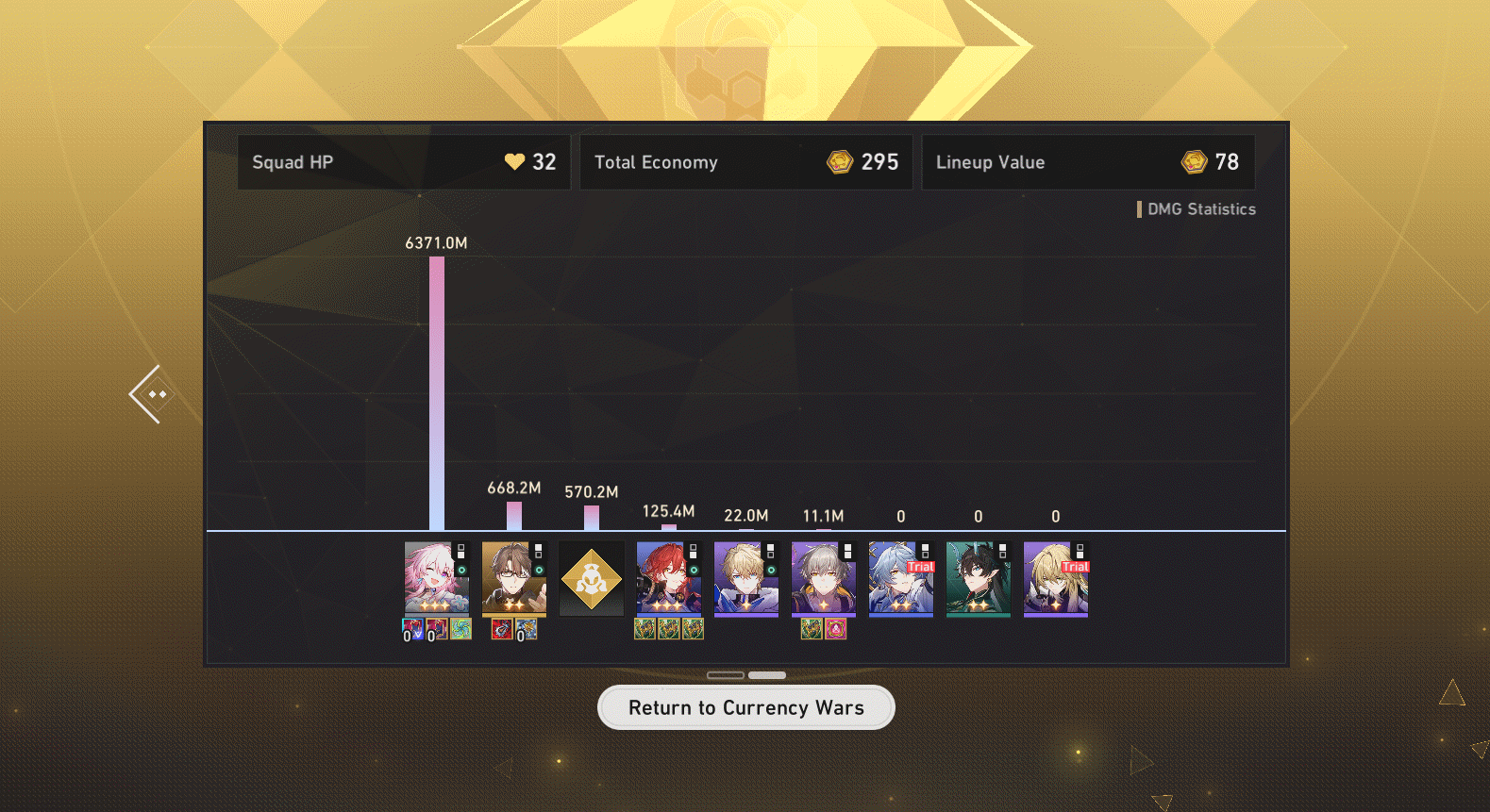 seems like WC 30+ in Currency War is impossible with trial characterseven Bloodflame/Night Demigods is hard unless your exodia have eidolonsI only reached WC40 by spamming elation. hopefully the chinks can find another bug to exploit