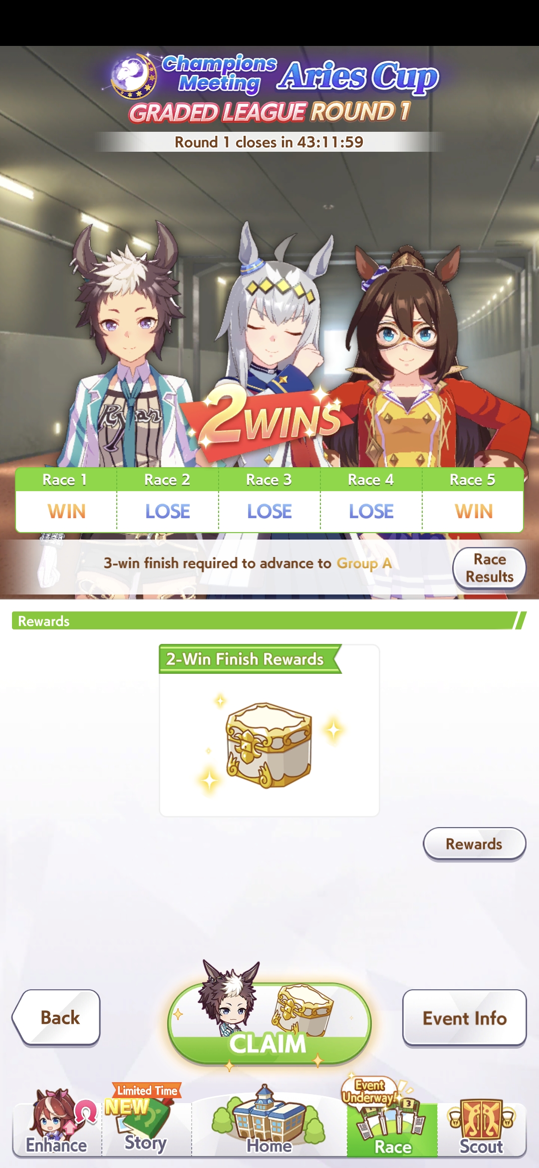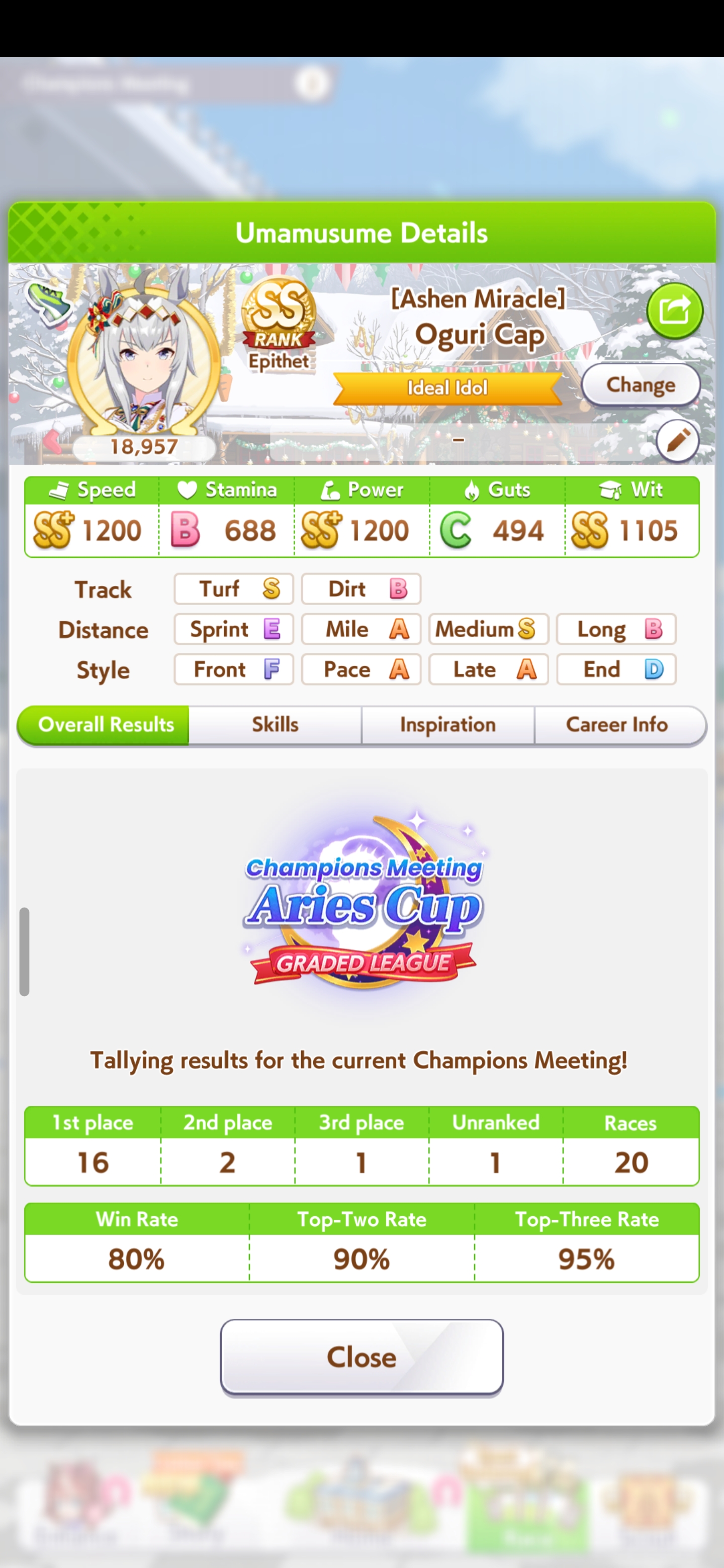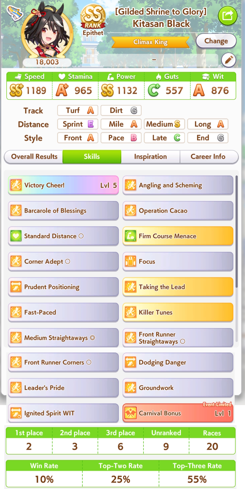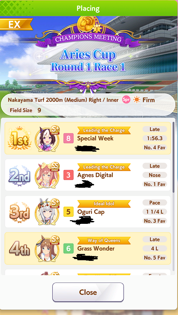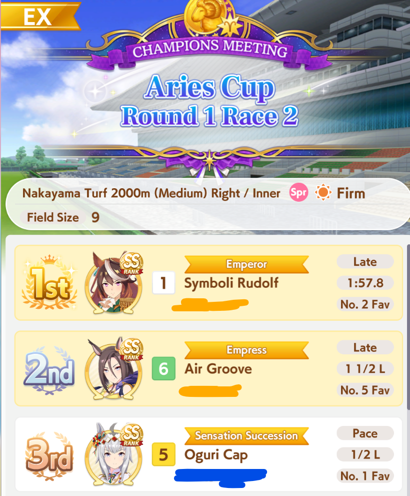 >>564556984Mine couldn't win. Even if I am at the front, Victory Cheer procs too early to make use of it for carry over.