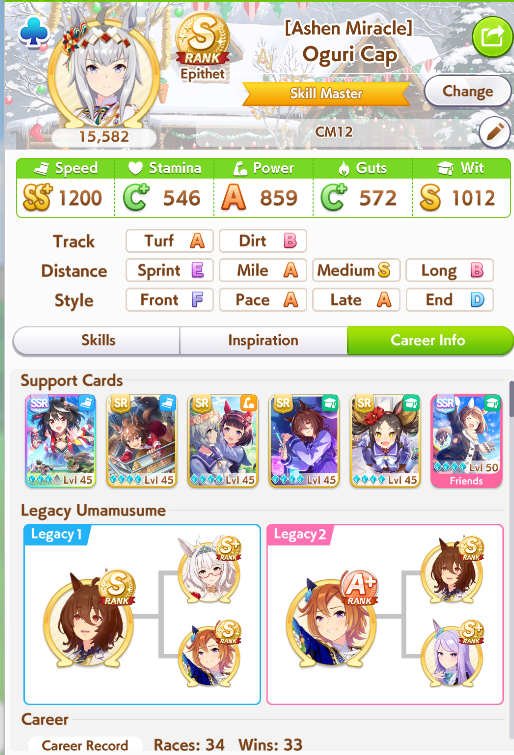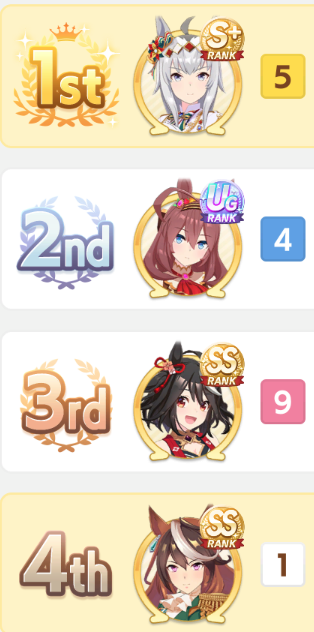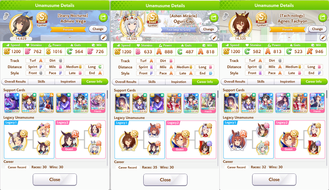 >>564553874This is currently my cm team and the type of decks I use, I feel I can do better and was wondering if I needed more races to get to SS or just better cards, I usually save everything for summer training unless there's something really good with rng.