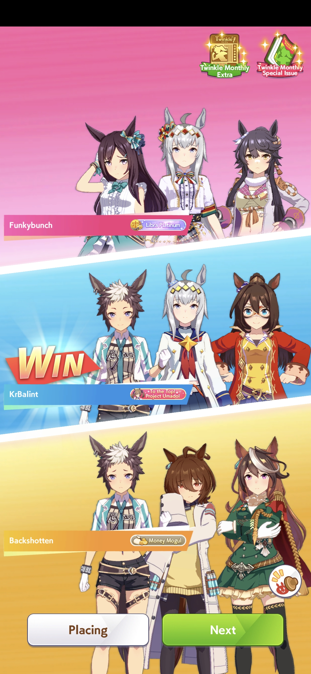 >>564556398I've hit two of the gold gambas at the right time and it's really just kind of not enough if you're facing properly-built opponents. She needs MPB, OYL, and Radiant Star all at the same time to really rocket forward and close the gap quickly enough to combo into Eternal Shine and get the win. But whatever. Golshi and Digitan are doing fine. For now. I think I can make A finals.