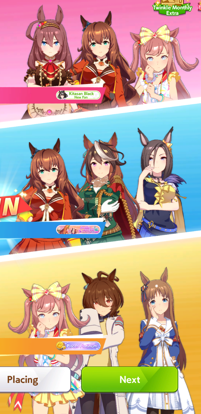 >>564568934>Without that knowledge I don't think I'd have stuck with it.It really is a blessing, but also a curse because global is super sweaty and goes for everything meta, not that ruins my enjoyment of the game, but I would have liked global to develop differently. The first weeks of Aoharu when they released the skills update earlier was the most fun I had in the game for a while>One of my biggest regrets is not going from 140 pulls to a sparkSuch is life. No point in focusing on what we didn't do now, just try not to make the same mistake in the future. And luckily for you, there are legend races for her, but I understand it sucks you have to wait for that now when you could have pulled earlier. Eh it's whatever you have her so enjoy that